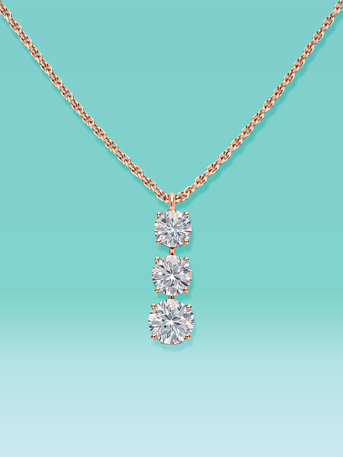 Round Cut Waterdrop Triple Lab Diamond Necklace